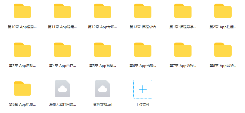 本章节带领大家一起学习大型App优化中一定会有的专项技术优化,涉及列表卡顿页优化、Android存储优化、WebView白屏问题等。