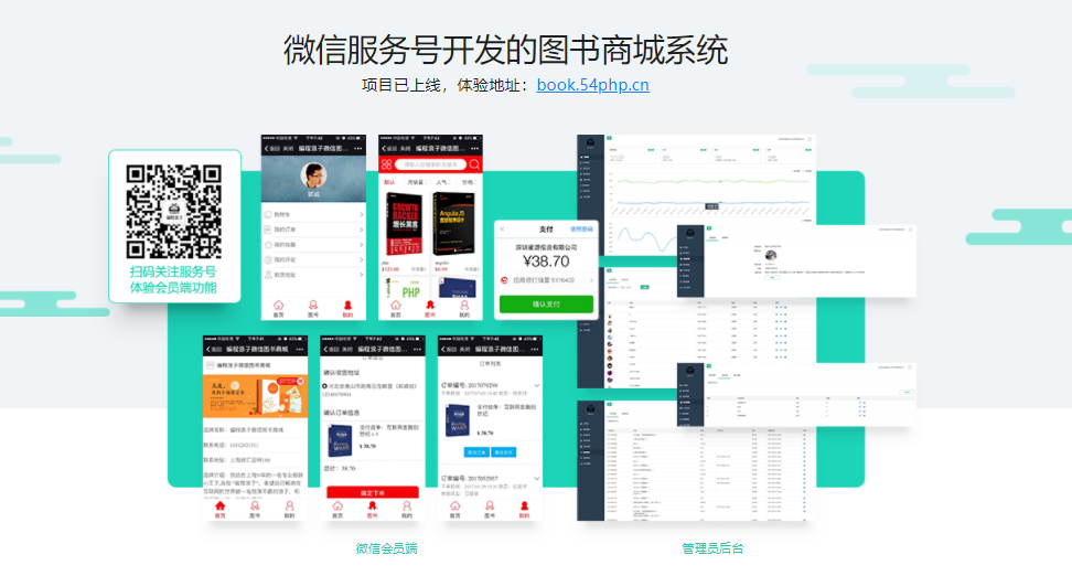 - 本章内容会给大家通览本门课程的整体架构、功能模块、技术选型及课程安排,让大家在一个清晰的开发思路下,进行后续的学习,同时领着大家登陆http://book.54php.cn(微信服务号可以打开这个网站直接扫码体验)一起来演示一下项目。本次课程是严格按照商业系统进行架构开发的,从PC管理员端到微信/H5会员端,从零开始,通俗易…