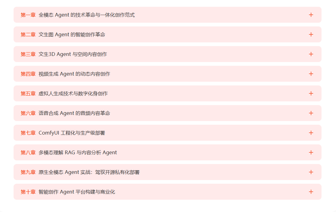 10 章核心技术 × 6 个商业项目 × 4 大能力进阶 = 一站式企业级多模态创作系统