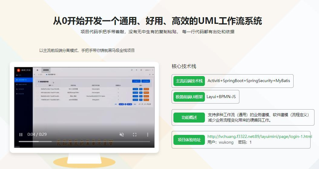 首先项目演示了解项目整体情况,便于小伙伴通过本课程学习,能够最终做出的怎样的项目效果。同时,明确学习activiti工作流对今后工作的重要性,确立学习目标。