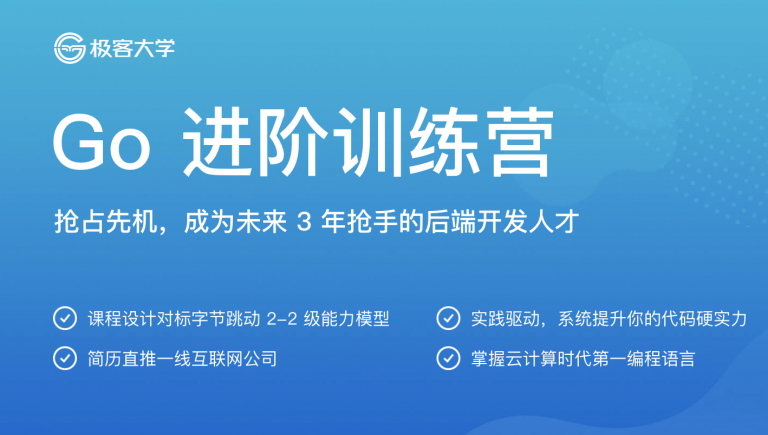 课程设计对标字节跳动 2-2 级能力模型,实践驱动,系统提升你的代码硬实力,简历直推一线互联网公司,掌握云计算时代第一编程语言。