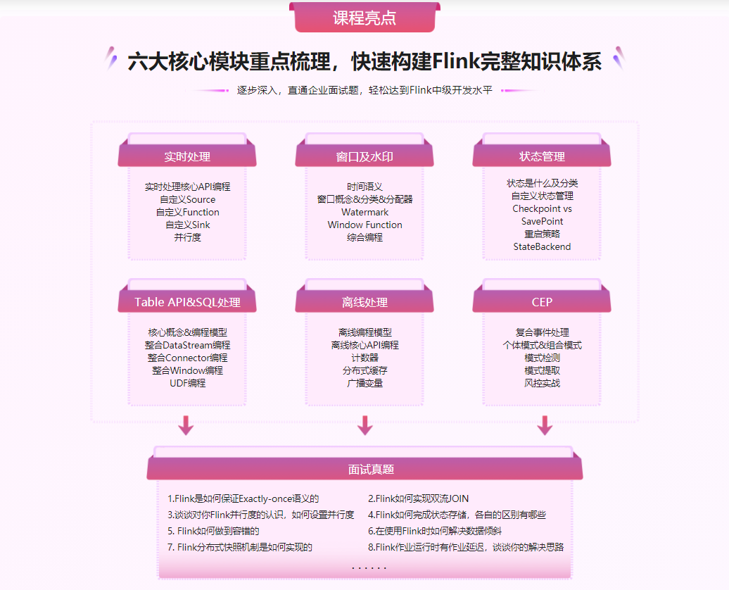 Flink已经成为高薪大数据工程师的必备技能,越早掌握,越能占得红利。本课程带你原理出发,构建知识体系,并引入热门OLAP引擎ClickHouse,整合Flink搭建企业级大数据实时分析应用,带你彻底打通Flink开发任督二脉。