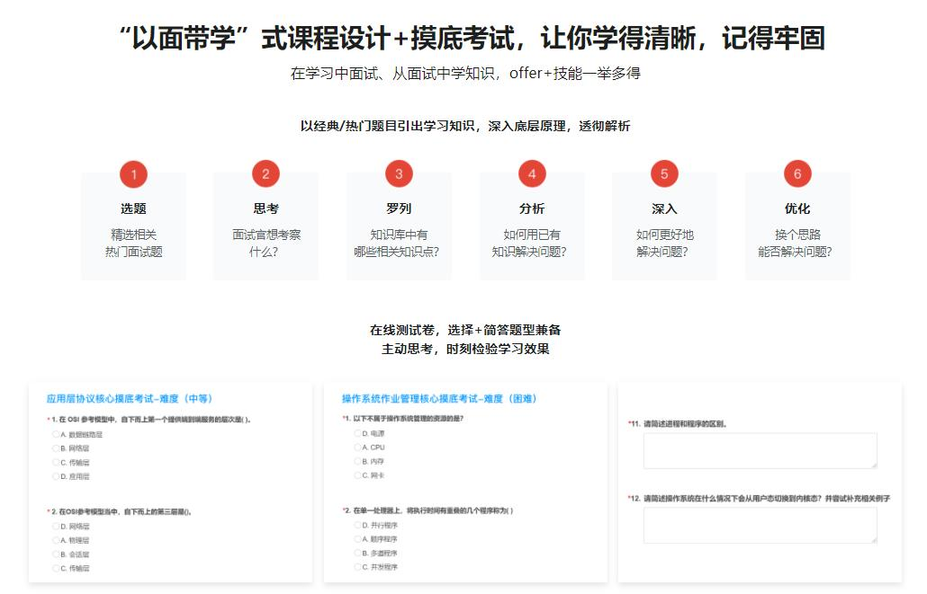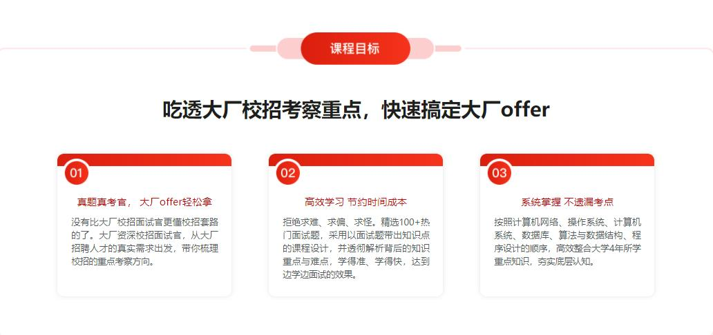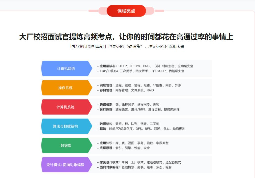 对大多数人来说,校招,是相对容易进大厂的机会,也是奠定职场生涯的重要起点。本课程针对准应届生而设,从计算机网络、操作系统、计算机原理、算法与数据结构、设计模式、数据库等经典基础知识,到初次求职的软技能,快速提升大厂重视的后端素养,斩获心仪校招offer。