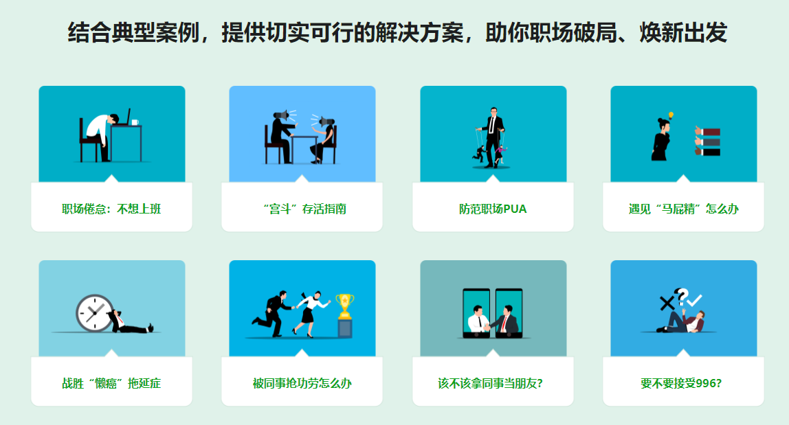 通过职场案例演示,综合运用心理学知识,分析背后的原理,以及给出相应的建议。让大家真正体会到行为背后的心理问题,以及如何运用所学知识,如何疏导各种问题,培养健康的心理。希望对您有帮助,大家能有所收获。