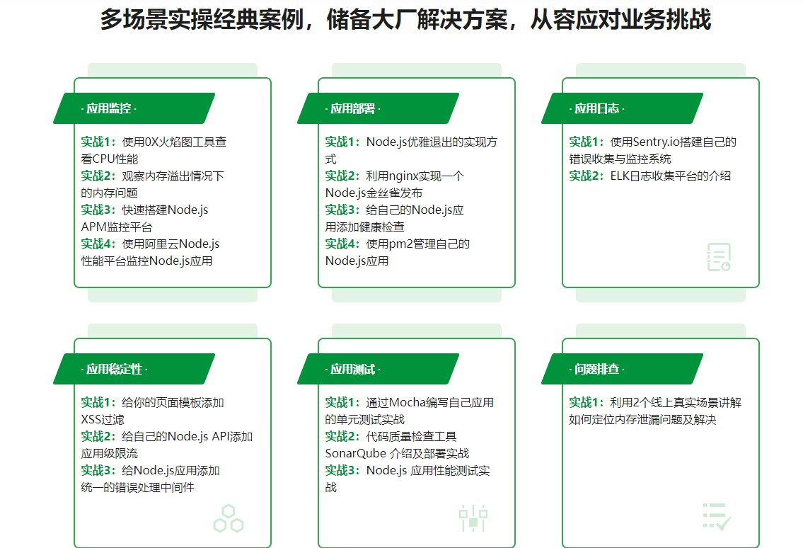 本章节会从Node.js测试讲起,这块能力可以说是业内Node.js开发者最欠缺的一块知识,也是大公司考察Node.js编码习惯的重要切入点。这个模块我们会讲解单元测试、代码质量、性能测试这三方面的知识,同时通过实战让大家真正把测试作为自己的基本能力之一。 …