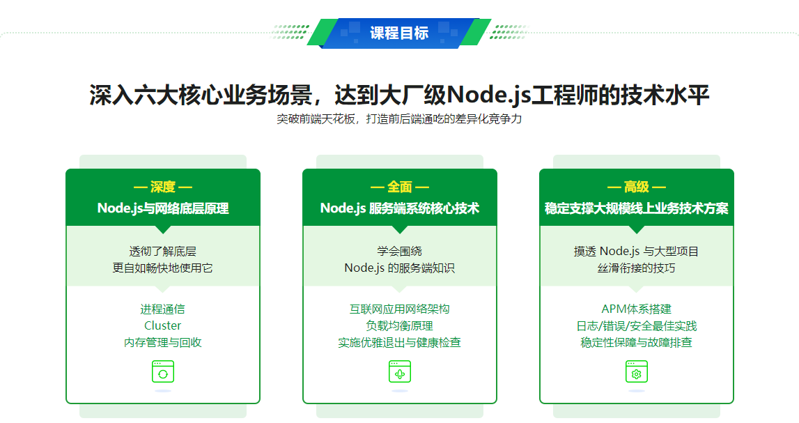 工作 3-5 年,有一定经验的研发人员,想更深入从事 Node.js 开发,突破自己职业瓶颈去大厂的同学。