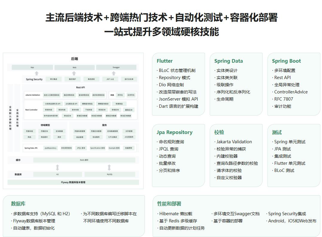 技术人员唯有多领域发展,才能具备抓住最佳机会和心仪Offer的实力。本课程将带你基于全栈技术(SpringBoot 3+Flutter3),全流程打造多端低代码运营管理平台,助你急速打通“全栈+跨端“综合技能,更快胜任多领域岗位,先人一步成为企业青睐的 “驾驭全局,深广兼备,打通端到端全技能” 的全能型人才。