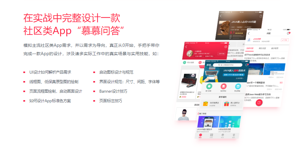 不同于其它只教给你设计技能的课程,本课程将带你从产品的高度实战UI设计,以产品需求为导向,按真实项目流程进行实战,遵循主流的设计规范与标准,一步步完成APP设计,让你真正成为一个具有产品经理思维的“设计师”。