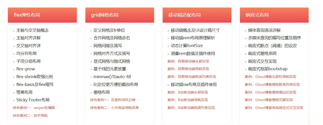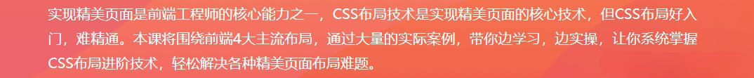 前端内功修炼:5大主流布局系统进阶视频教程,前端主流布局系统进阶与实战,轻松解决页面布局难题。前端主流布局系统进阶与实战,轻松解决页面布局难题,是一门前端主流布局系统进阶与实战,轻松解决页面布局难题的视频教程,本视频教程围绕大量的实战案例,带你系统讲解CSS布局高级核心技术,让你轻松应对实际项目中的各种精美页面布局难题。